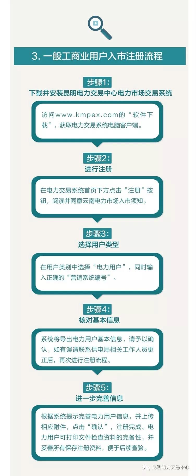 2018年10月22日起,昆明電力交易中心發(fā)布《關(guān)于云南電力市場(chǎng)受理一般工商業(yè)用戶注冊(cè)的公告》,正式受理一般工商業(yè)用戶參與電力市場(chǎng),標(biāo)志著云南成為全國(guó)首個(gè)全面開放一般工商業(yè)用戶參與電力市場(chǎng)的省份。在此,我們熱忱歡迎每一位納入市場(chǎng)準(zhǔn)入范圍的一般工商業(yè)電力用戶成為云南電力市場(chǎng)的重要一員。