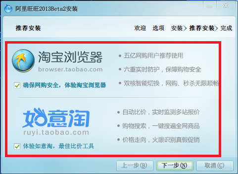 圖:阿里旺旺捆綁安裝自家瀏覽器和比價(jià)工具