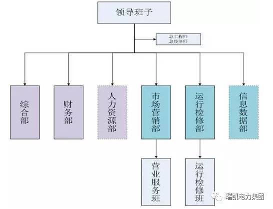 第二類售電公司由于具有配電網運營權,類似于一個小型供電局或者大型供電所,因此應考慮完整的配電網運行檢修、電力營銷等配售電組織機構及崗位設置,本著“精簡高效”的原則,組織架構和崗位設置應滿足公司日常業(yè)務開展情況,并根據(jù)業(yè)務發(fā)展需要,及時合理進行更新。