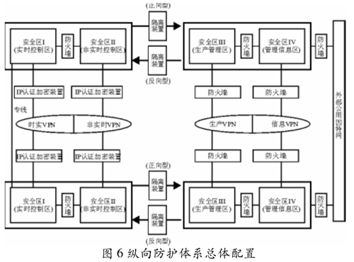 界的安全防護(hù),保證數(shù)據(jù)傳輸?shù)目煽啃院蛯?shí)時(shí)性??v向防護(hù)體系總體配置如圖6所示。