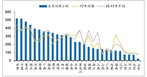 同比來看,2018年5月河南(152小時)、青海(149小時)和寧夏(137小時)等地利用小 時同比提高較多,而福建(-139小時)、黑龍江(-150小時)和海南(-197小時) 等地利用小時同比回落較多。