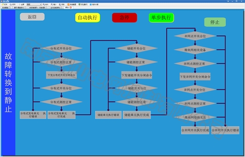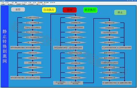 2、并網(wǎng)、離網(wǎng)等各種狀態(tài)的切換流程,全部采用圖形順控實(shí)現(xiàn),簡單直觀。
